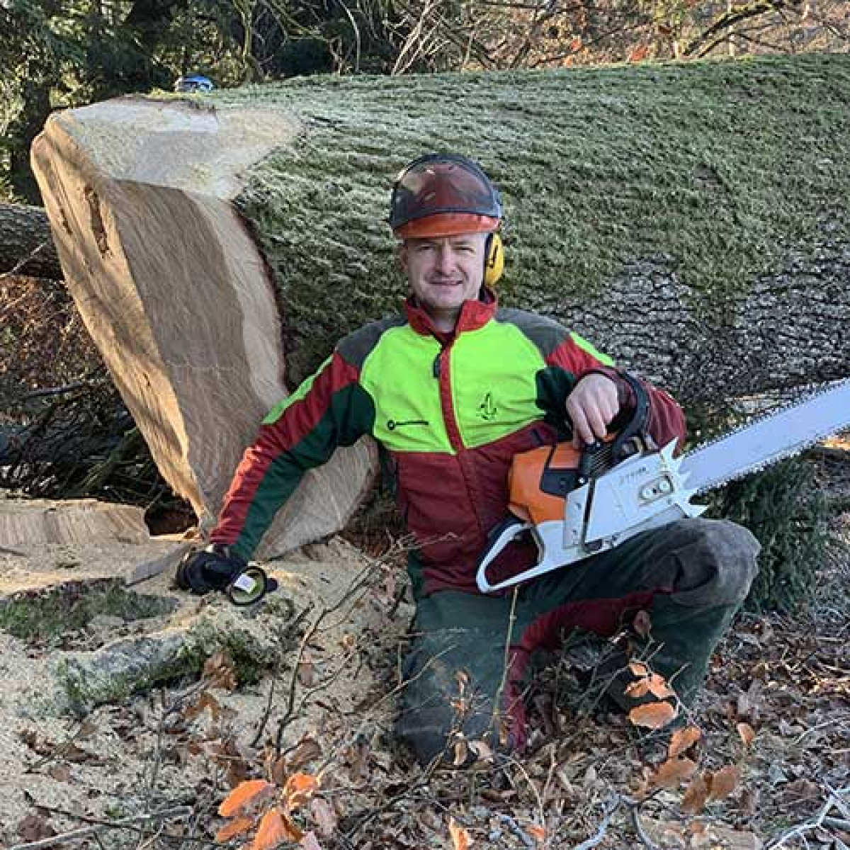 Markus geht diese Aufgabe mit Herz und Verstand an. Mit viel Respekt vor der Natur sorgt er dafür, dass der Baum sicher fällt. Das Holz wird weiterverarbeitet oder bleibt als Lebensraum für Waldtiere liegen.